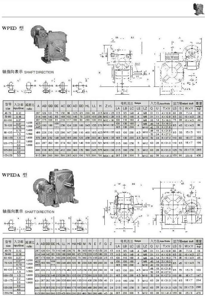 WPED,WPEDA型型號參數(shù)圖表