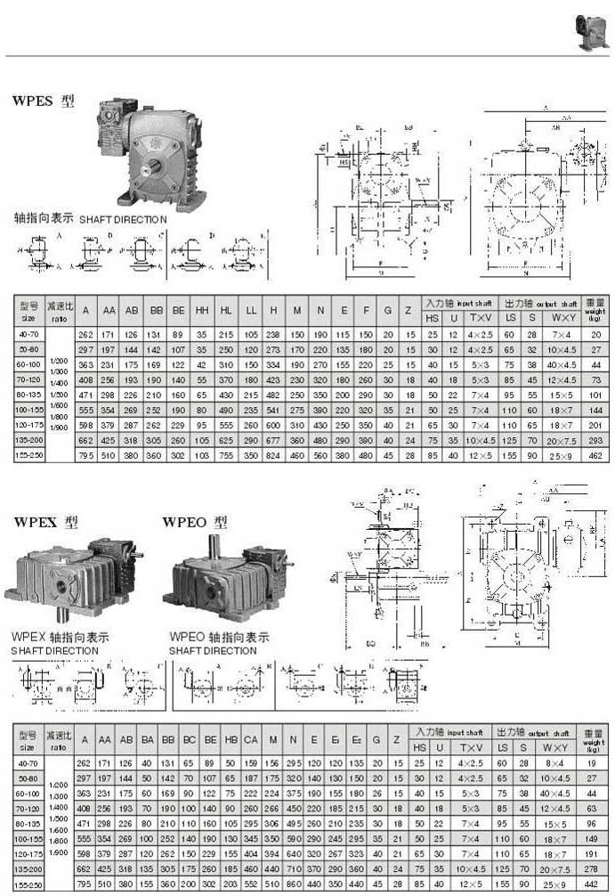 WPES,WPEX,WPEO型型號(hào)參數(shù)圖表