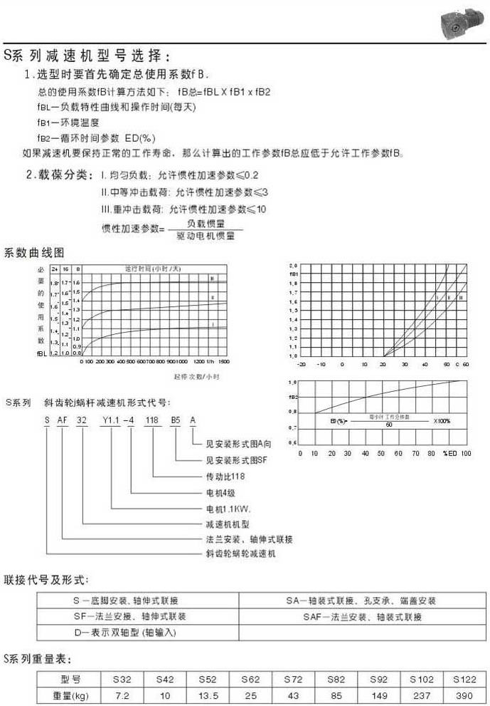 S系列減速機型號表示系數(shù)曲線圖聯(lián)結代號及形式重量表
